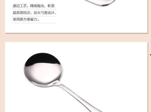 1. 材质:选择不锈钢材质的勺子,耐用且易于清洗。