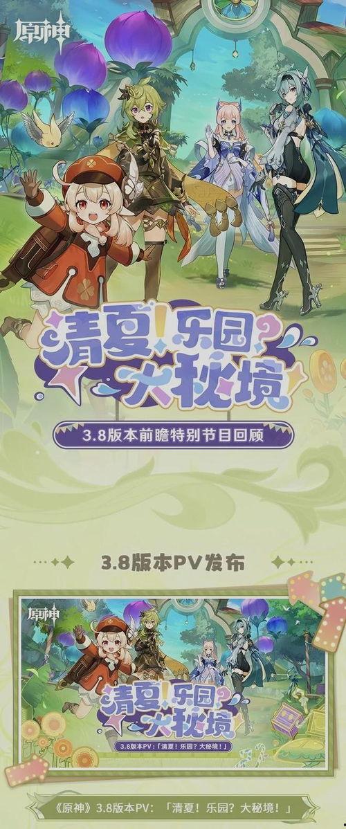 总的来说,原神3.8版本可谓是精彩纷呈,无论是新角色、新武器,还是新活动和新剧情,都让人充满期待。相信在这个版本中,玩家们将体验到更加丰富的游戏内容,感受到更加精彩的冒险旅程。